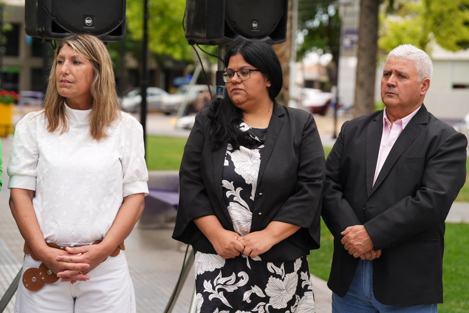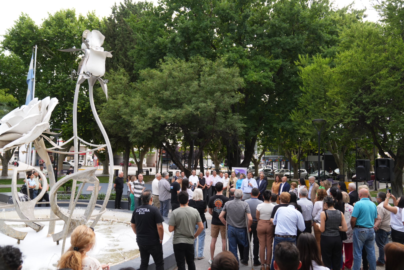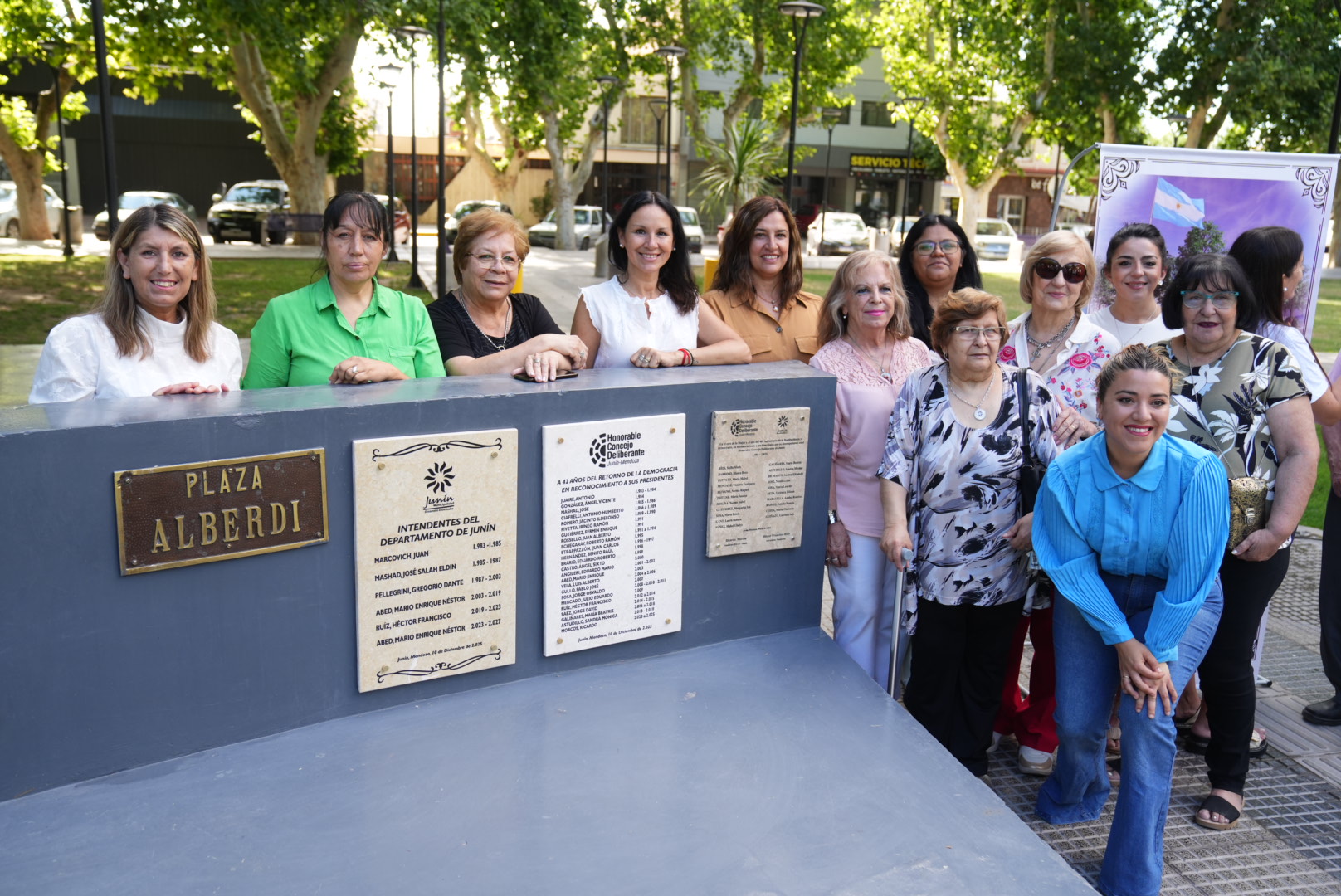 La Municipalidad de Junín y el Concejo Deliberante realizaron un sencillo acto en la Plaza Departamental Juan Bautista Alberdi, a 42 años del Retorno de la República Argentina a la Democracia.