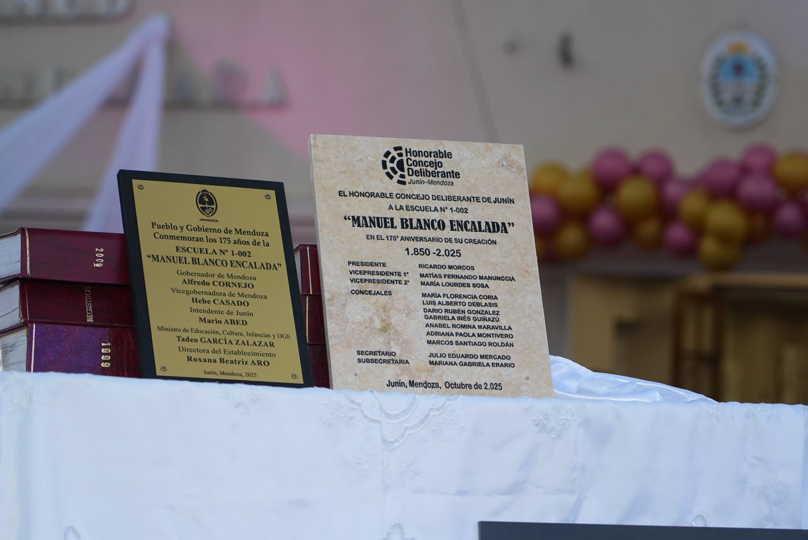 El Concejo Deliberante acompañó el emotivo acto por los 175 años de la Escuela Manuel Blanco Encalada, la institución educativa más antigua de la Provincia de Mendoza, con una trayectoria de más de un siglo y medio dedicada a la formación de generaciones de juninenses. Actualmente, la escuela cuenta con una matrícula cercana a 700 alumnos, funcionando en turnos mañana y tarde.