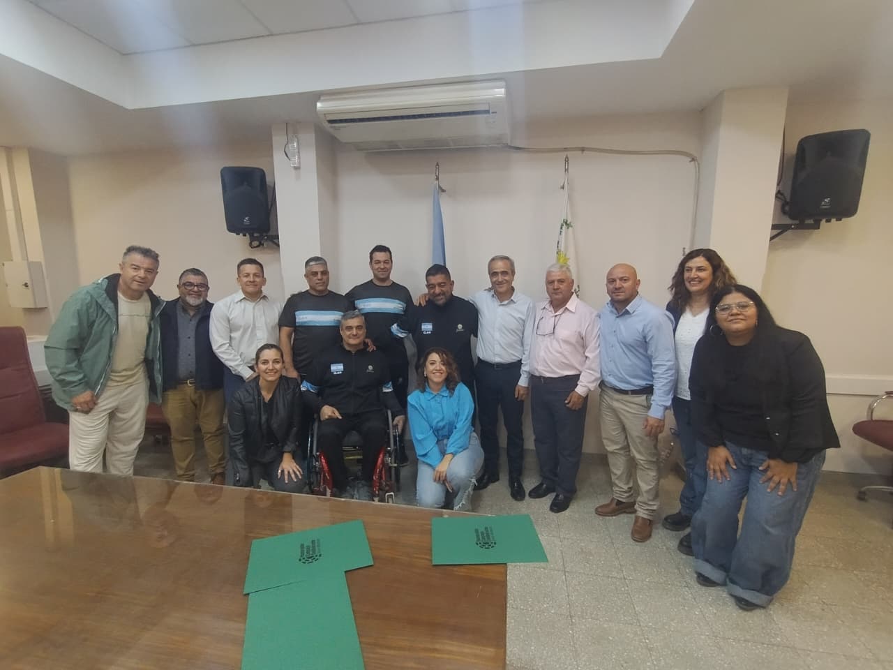 El Presidente del Concejo Ricardo Morcos y los Ediles Matías Manunccia, Santiago Roldán, Alberto Deblasis, Darío González, Florencia Coria, Adriana Montivero, Gabriela Guiñazú, Lourdes Sosa y Romina Maravilla, junto al Intendente Mario Abed y el Jefe de Deportes Alberto Martínez, reconocieron al equipo que representó a la Argentina en el Mundial de Clubes de Metegol Adaptado disputado en Sicilia, Italia y en el cual nuestro país debutó.