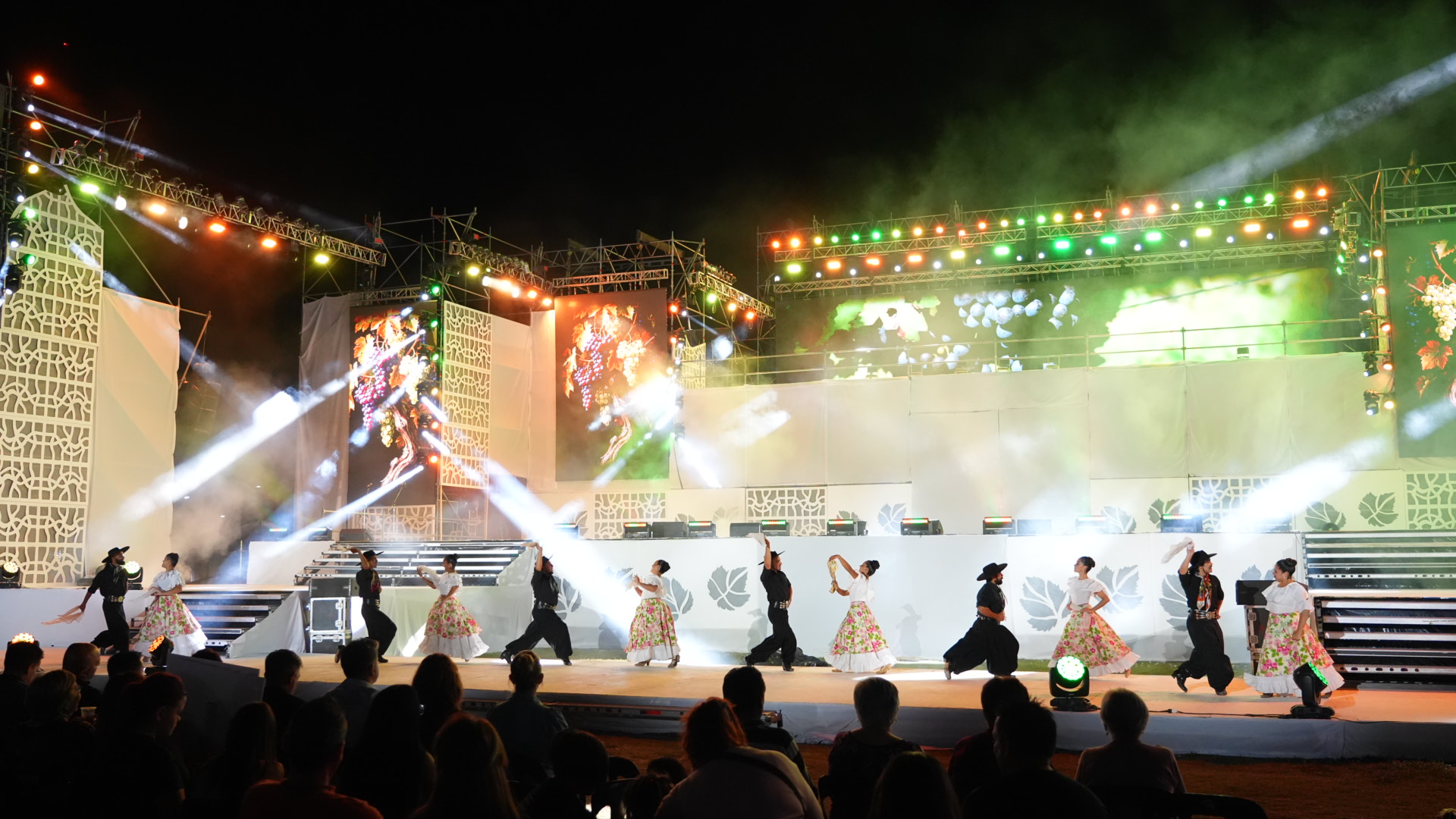 La noche del lunes tuvo la participación de Junín sobre el escenario, donde brillaron artistas locales, con un fragmento de la Fiesta Departamental de la Vendimia “El milagro que florece, el sueño que se hizo jardín”, llevando al público parte de su esencia vendimial.