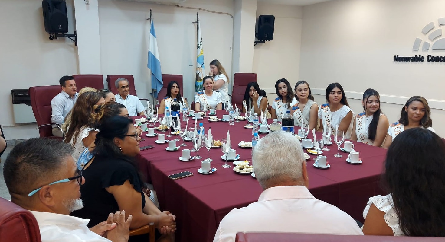 El Presidente Ricardo Morcos y los Ediles Gabriela Guiñazú, Adriana Montivero, Alberto Deblasis, Darío González, Lourdes Sosa, Florencia Coria y Santiago Roldán fueron anfitriones de las representantes distritales y de Camila Sáez, Reina de la Vendimia 2.025 y Abril González, Reina del Encuentro de las Naciones 2.025; a estas últimas se les entregó un reconocimiento. Las candidatas se presentaron ante los Ediles y dejaron su mensaje. Las mismas son: Candela Caballero (Alto Verde); Florencia Manresa (Tres Esquinas); Daiana Sosa (Los Otoyanes); Guadalupe Mendoza (B° Jardín Ferroviario); Carina Fernández (Mundo Nuevo); Julieta Sosa (Algarrobo Grande); Febe Funez (La Colonia); Mara Lizana Muñoz (Ciudad); Magalí Urizar (Medrano); Mariela Pizarro (Philipps); Sofía Garay (Orfila); Julieta Cónsoli (Ing. Giagnoni); Antonella Sánchez Martínez (Los Barriales) y Rocío Maribel Leanza (Rodríguez Peña).